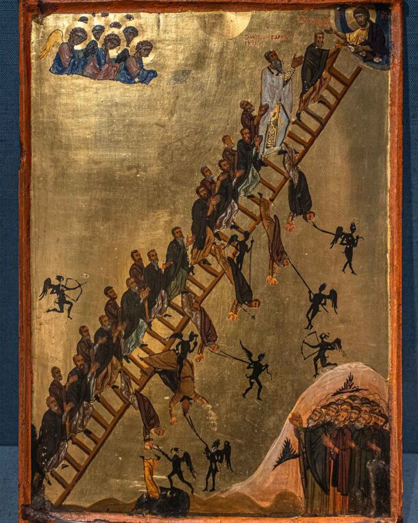Στο βάθος της Σιναϊτικής ερήμου, μέσα στα τείχη της Μονής της Αγίας Αικατερίνης, επιζεί αιώνες τώρα ένα μικρό και συμπυκνωμένο Βυζάντιο. Από την ίδρυση της μονής από τον Ιουστινιανό (549-565 μ.Χ.) και μέχρι τις μέρες μας, με Ελληνορθόδοξους μοναχούς που φημίζονταν για την πνευματικότητα και την καλλιέργειά τους, μακριά από τα μεγάλα πολιτικά κέντρα και τα πεδία των μαχών, συγκεντρώθηκαν εδώ και διατηρήθηκαν πνευματικοί και πολιτιστικοί θησαυροί, που συνδέουν σε αδιάσπαστη συνέχεια τον κόσμο της Ύστερης Αρχαιότητας με τον 21ο αιώνα.