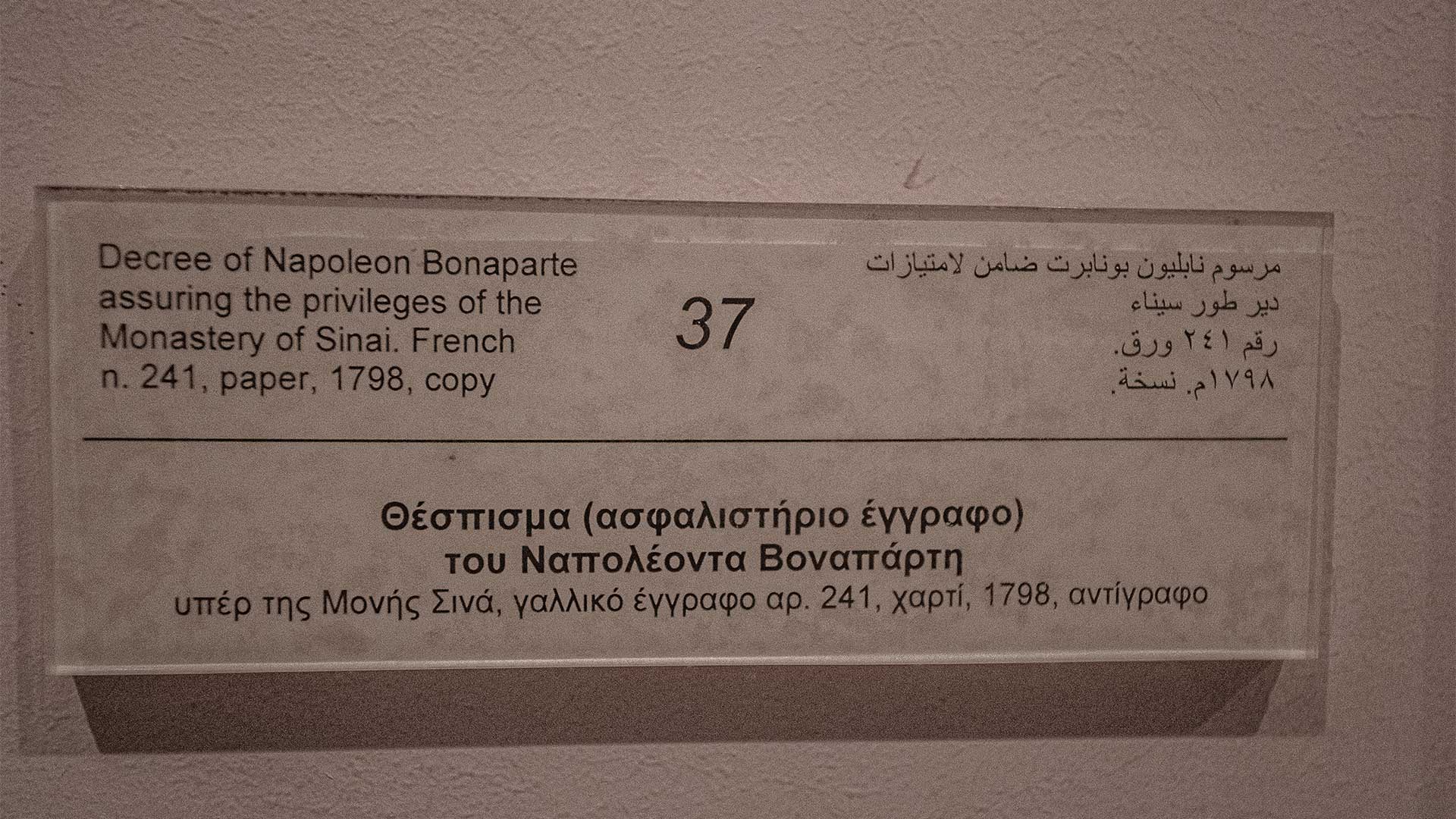 Στο βάθος της Σιναϊτικής ερήμου, μέσα στα τείχη της Μονής της Αγίας Αικατερίνης, επιζεί αιώνες τώρα ένα μικρό και συμπυκνωμένο Βυζάντιο. Από την ίδρυση της μονής από τον Ιουστινιανό (549-565 μ.Χ.) και μέχρι τις μέρες μας, με Ελληνορθόδοξους μοναχούς που φημίζονταν για την πνευματικότητα και την καλλιέργειά τους, μακριά από τα μεγάλα πολιτικά κέντρα και τα πεδία των μαχών, συγκεντρώθηκαν εδώ και διατηρήθηκαν πνευματικοί και πολιτιστικοί θησαυροί, που συνδέουν σε αδιάσπαστη συνέχεια τον κόσμο της Ύστερης Αρχαιότητας με τον 21ο αιώνα.